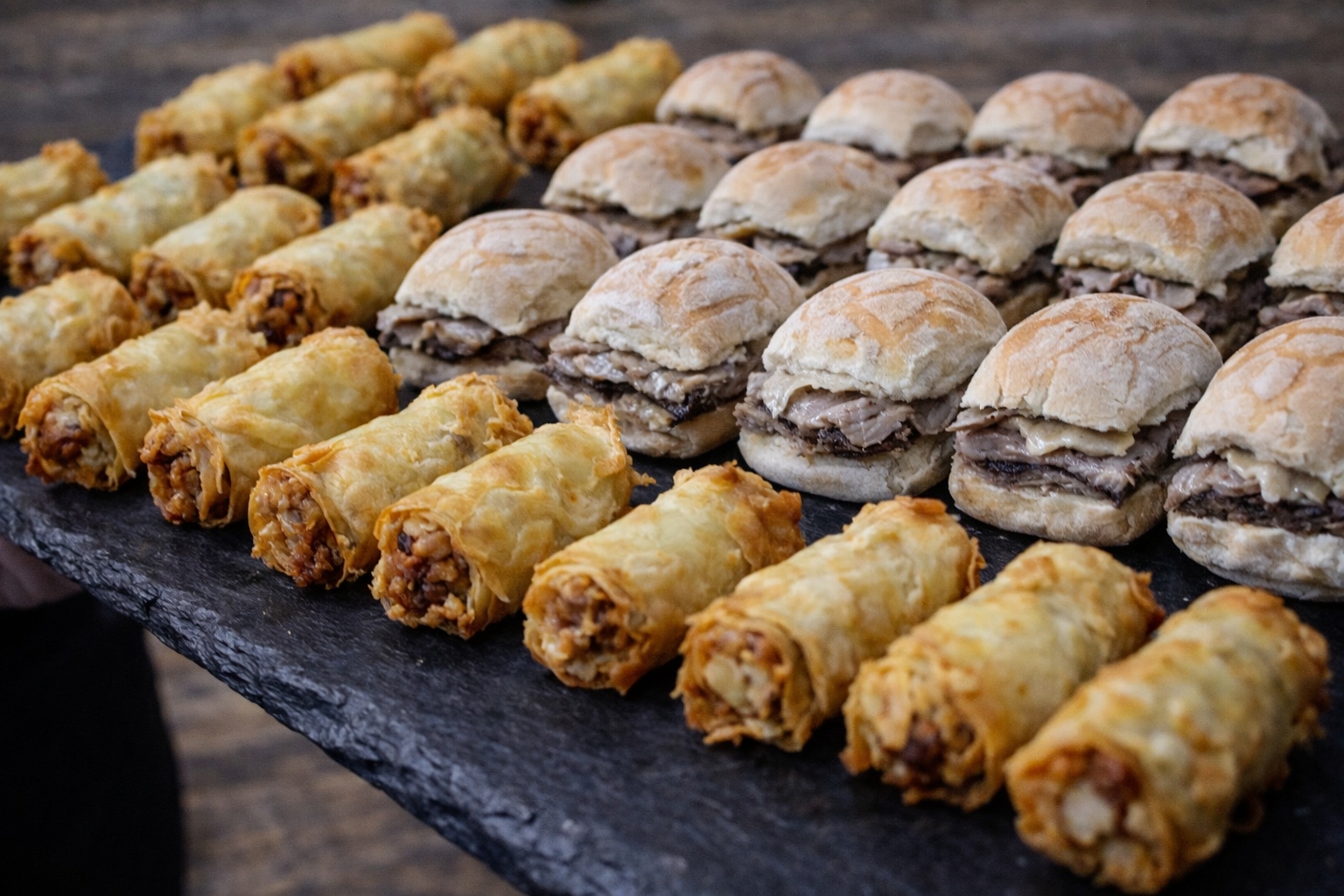 Ofrecemos sándwiches de lomo y bondiola de cerdo, preparados en el momento, con pan fresco y carnes jugosas cocidas a la parrilla. Es una opción perfecta para cumpleaños, encuentros empresariales, inauguraciones o celebraciones al aire libre. Permite una dinámica más libre, sin dejar de lado la calidad y el auténtico sabor criollo.